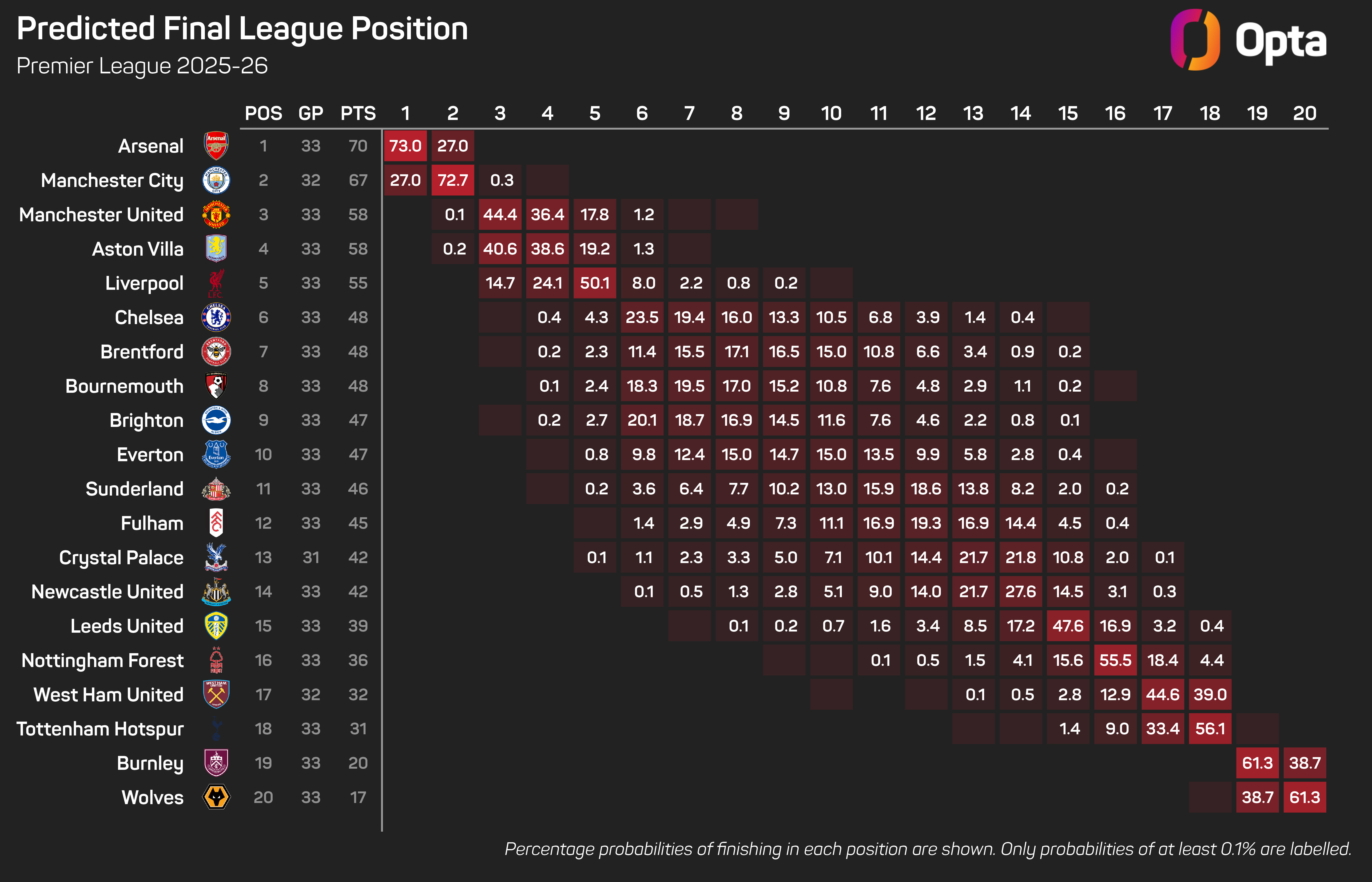 City's title chances have been boosted to 27% by the Opta supercomputer following this victory, with Arsenal's dropping to 73%.