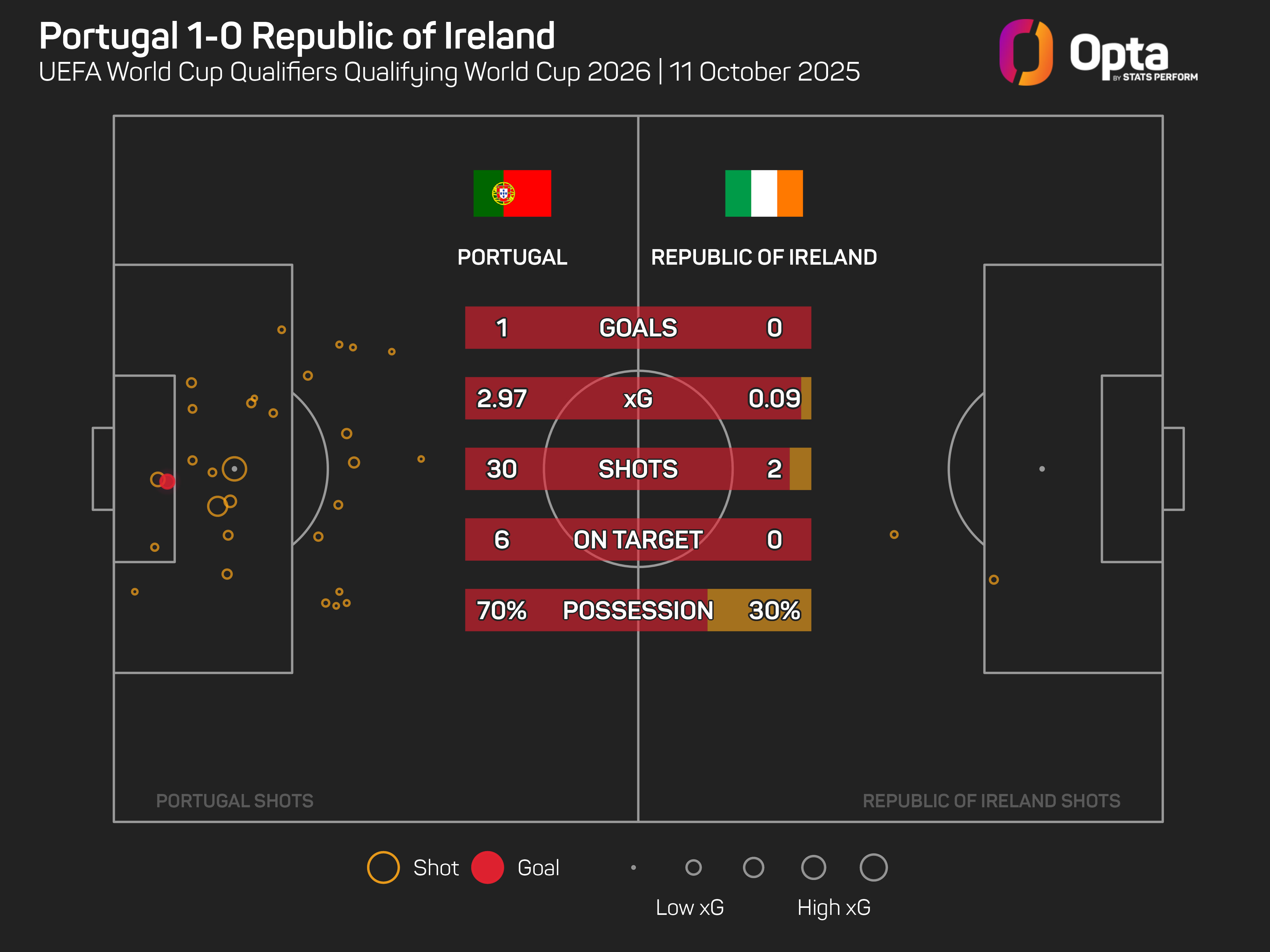 It was a backs-to-the-wall display, with Portugal registering an expected goals (xG) total of 2.97 from their 30 shots, six of which were on target, to their 0.1 from their two attempts.