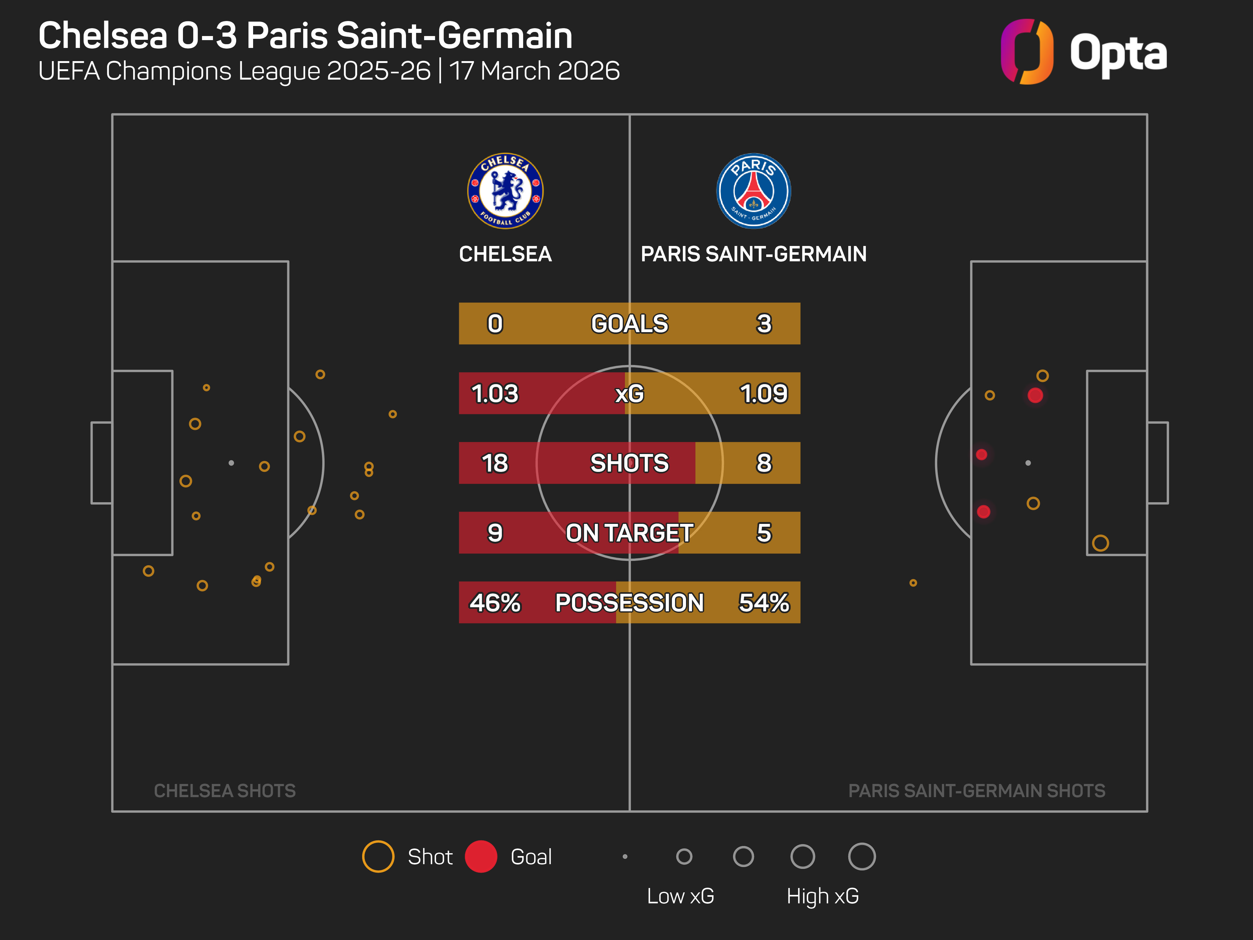 Chelsea had 18 shots in total, with nine of those on target as Matvey Safonov made a string of fine saves to protect PSG's clean sheet.