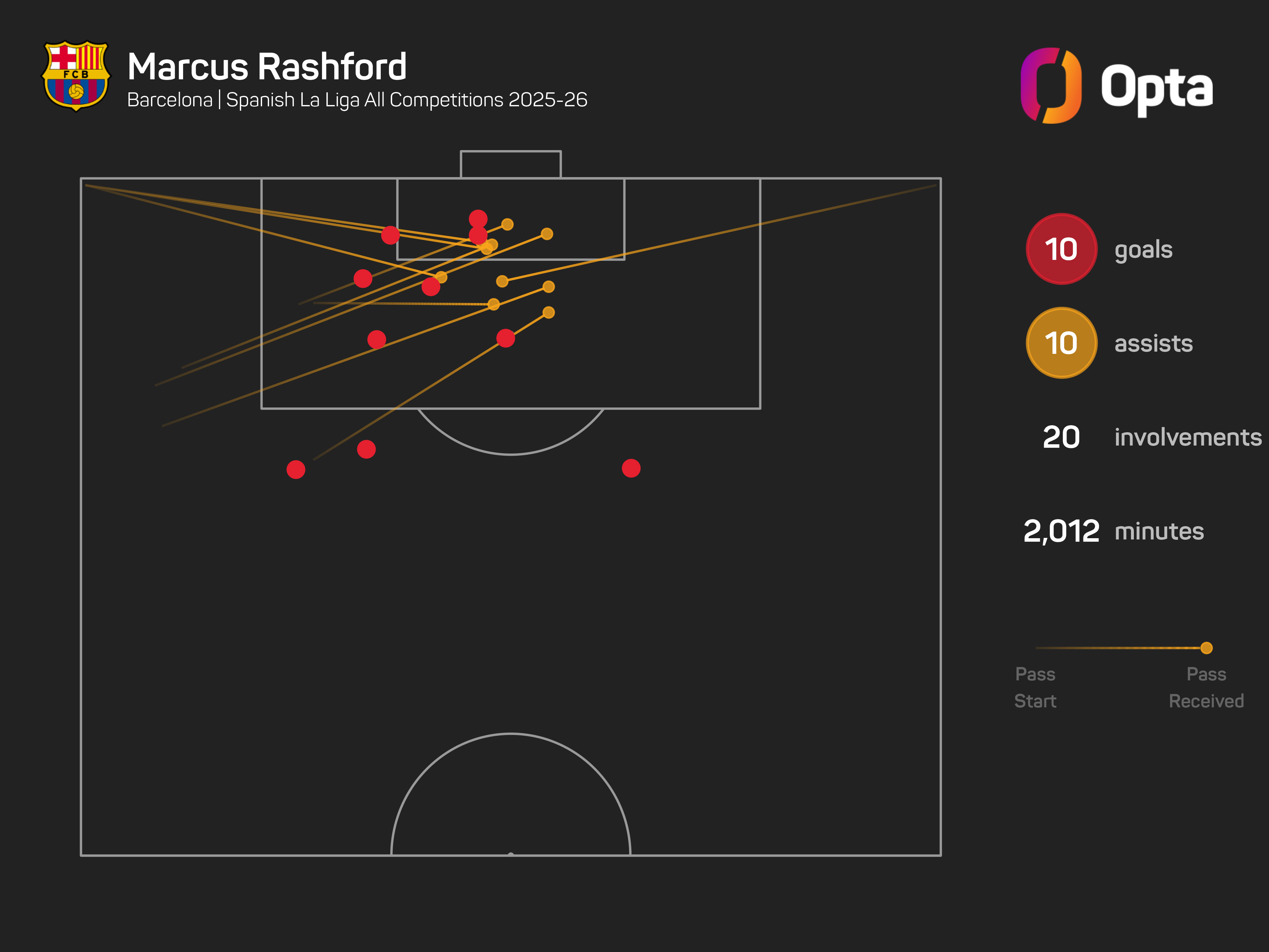 He has netted 10 goals in all competitions, also hitting double figures for assists (10), with Barcelona still fighting for the LaLiga title as well as the Champions League.