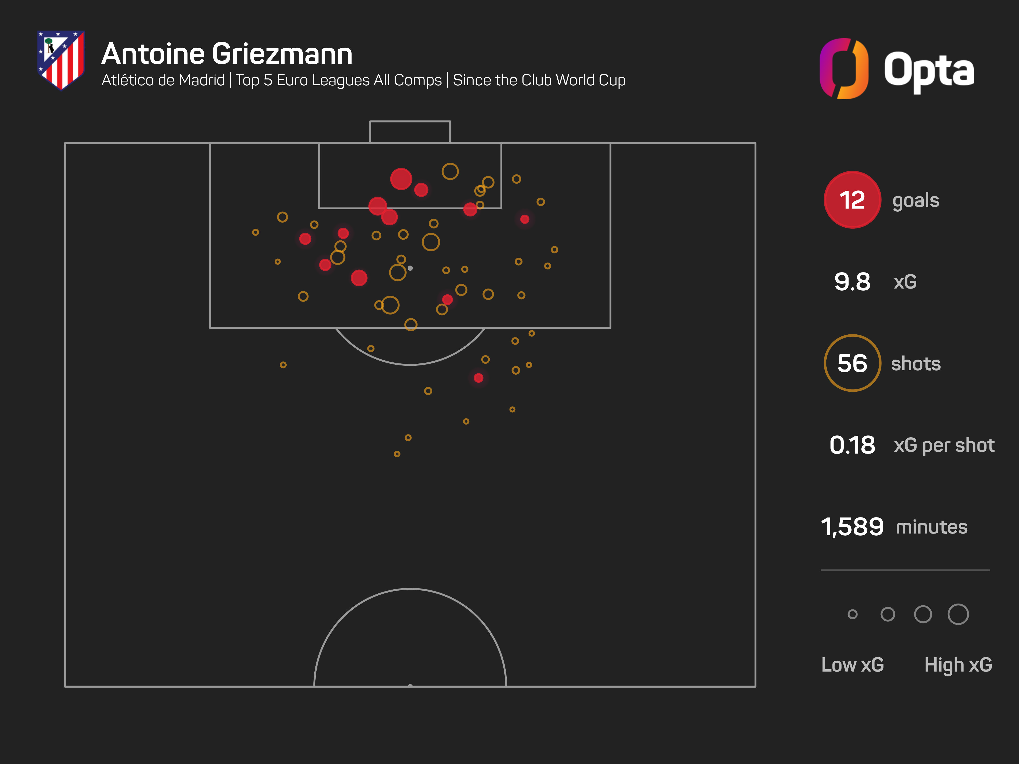 Griezmann is the leading scorer in Los Colchoneros' history, having scored 210 goals in 481 games for the club, also supplying 89 assists across his two spells.